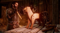 - One of his hobbies seems to be woodworking, as he is sometimes seen making wooden objects, such as griffons in the stables.